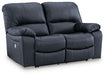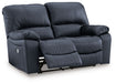 Focus on function. This practical power reclining loveseat balances contemporary character and irresistible comfort. Its affordable, expertly matched leather and faux leather upholstery keeps your style up to speed without breaking the bank. Reclining with the touch of a button, this piece plays well in relaxed, luxe seating areas made for quality time.
