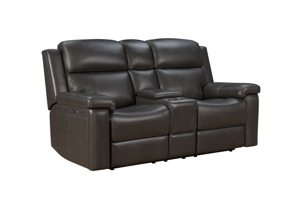 Leon - Power Console Loveseat Recliner With Power Headrest, Power Lumbar, Heat And Massage - Smokey Gray