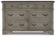 | Details | Made with acacia wood, birch and acacia veneers, engineered wood and cast resin components, Two-tone finish; antiqued gray body with a rich, deep walnut brown finish on top, Dark bronze-tone bails and knobs, 7 smooth-gliding drawers with dovetail construction, Framed drawer fronts, Overlay decorative corbels | |