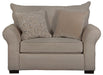 The Maddox oversized chair is the epitome of comfort and style.  The Maddox oversized chair boasts transitional styling with a generously sized seating area.  The chair is covered in a soft polyester fabric that invites you to unwind in luxury. With its inviting flared arms and exquisite detailing, this chair seamlessly blends timeless charm with modern elegance. Experience the pinnacle of relaxation as you sink into the plush seating, expertly crafted with individually pocketed coils encased in foam for unrivaled support. And that’s not all – our innovative cool gel infused memory foam seat topper ensures a refreshing and comfortable seating experience like no other. Complete with two designer accent pillows, this chair isn’t just furniture; it’s an expression of opulence and relaxation. Elevate your living space with our exceptional transitional oversized chair – where comfort meets sophistication.