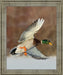 Experience the captivating grace of a mallard in mid-flight with this exquisite framed photograph. The vibrant green head and bright orange feet of the duck contrast strikingly against a soft, blurred natural background, evoking a sense of freedom and movement. Housed in a sophisticated crisp chardonnay frame with premium real glass, this piece enhances any living room, office, or study with its contemporary charm and vivid detail, arriving ready to hang and transform your space with the beauty of wildlife.