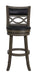 The New Classic Furniture Manchester Pub Height Swivel Bar Stool is a functional and durable seating solution designed for comfort and style. Crafted from quality Rubberwood solids and manufactured wood, ensuring long-lasting strength. Featuring a seat height of 29”, the stool's legs are reinforced by a circular footrest, providing added stability and functionality. With a 360-degree swivel, this barstool effortlessly rotates for convenient use at kitchen islands or bars. The full foam seat cushions and backrests, upholstered in easy-care light gray 100% polyester fabric, offer a plush and cozy seating experience. The distinctive interlocking wave wood back and thickly welted upholstery add a touch of sophistication to the overall design. Easy assembly is a snap with the included instructions. Elevate your bar, counter, or kitchen island with the Manchester Bar Stool, where durability meets distinctive style.