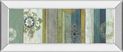 Transform your living space with this captivating framed wall art featuring a harmonious blend of abstract medallion motifs and vertical stripes. The artwork showcases a soothing palette of blue, green, gold, gray, and white tones, creating a serene yet dynamic visual experience. Encased in a sleek 2.5-inch mirrored frame, the piece reflects light beautifully, adding depth and a touch of modern elegance to any room. Measuring 18 by 42 inches, it’s perfectly sized for living rooms, bedrooms, or offices, offering an effortless way to infuse contemporary charm and artistic flair into your décor. Crafted with premium real glass to protect the vibrant graphic art beneath, this horizontal rectangular piece is ready to hang and designed to bring lasting beauty and sophistication to your home or workspace.