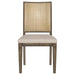 A trio of natural hues brings refined but casual character to a modern farmhouse dining chair. Perfect for friends and family enjoying delicious meals, the chair features a plush foam seat with beige upholstery. Its back is rattan, adding texture and character while maintaining a light, airy look and feel that's rich and breathable. Its classic stance features an armless silhouette complete with a gently angled back and straight, tapering legs. The natural finish of the wood offers a refined but accessible look, perfect for inviting family spaces.