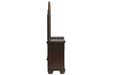 The Royal Classics Maximus Vanity Table Mirror in Madeira Brown is the perfect companion to the Maximus vanity table, offering both beauty and practicality. Crafted from solid poplar and premium birch veneers, this mirror is designed to provide enduring elegance and durability. The multi-step finish accentuates the rich wood grain, while delicately burnished gold tipping highlights the intricate Baroque-inspired carvings, adding a luxurious touch to its refined design. The beveled, low-distortion mirror ensures unmatched clarity, and the adjustable side wings allow you to customize the angle for a flawless reflection every time. This mirror is both a functional and exquisite addition to any vanity space, blending timeless sophistication with modern convenience.