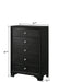 Step into a realm of sophistication and comfort with this stunning bedroom collection. Each piece showcases an exquisite blend of traditional charm and contemporary flair, making a bold statement with its textured surfaces and rich black finish. The bed, a centerpiece of luxury, features a sumptuous, tufted headboard with integrated lighting that invites a touch of opulence to your restful retreat. Coordinating storage solutions, including a dresser, chest, and nightstand, offer ample space with their gracefully designed drawers, accented with shimmering hardware that complements the set’s chic aesthetic.