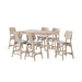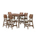 The Oscar Mid-Century Modern Wood Counter Height Dining Set offers a sophisticated blend of style and functionality for your dining area. This set includes a 60-inch counter height table and counter chairs, all crafted from solid Rubberwood and Walnut veneers to ensure durability and longevity. The counter table comfortably seats up to six people, making it perfect for both family meals and entertaining guests. The chairs are designed with reinforcing base stretchers for added stability and feature foam seat cushions wrapped in natural polyester fabric for enhanced comfort. The design of the Oscar Dining Collection emphasizes clean lines, organic curves, and a focus on practical function, reflecting the timeless appeal of mid-century modern style. The sleek, minimalist aesthetic, highlighted by a finish and natural grain patterns, adds warmth and sophistication to your kitchen nook, small dining space, or main dining room. The clear top coat finish enhances the natural beauty of the wood, creating an elegant yet functional dining set. Experience the perfect balance of form and function with the Oscar Mid-Century Modern Dining Collection, a choice that seamlessly integrates into any contemporary living space.