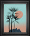 Step into a tranquil tropical evening with this captivating artwork that features the delicate silhouettes of palm trees standing tall against a soft pastel sky. A warm, peachy sun sets behind distant mountains while birds glide peacefully, evoking a serene coastal atmosphere. Encased in a sleek midnight aura frame with crystal-clear glass, this piece adds a refined touch of nature's calm to any living room or bedroom. Crafted with premium materials and ready to hang, it effortlessly blends contemporary style with soothing coastal vibes, making it a perfect centerpiece for your home decor.