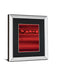 Immerse yourself in the fiery allure of this striking botanical composition, where vivid red hues sweep across the canvas in textured horizontal bands. Five delicate floral silhouettes emerge boldly against the rich background, their forms both simple and captivating. Encased in a sleek mirrored frame with double matting in black and cream, this piece exudes contemporary sophistication. Protected by premium real glass, its vibrant colors and layered details create a dynamic focal point that enlivens any living room or bedroom. Ready to hang, it invites warmth and passion into your space with effortless modern elegance.