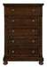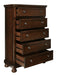 Elegant, timeless furnishings take your bedroom to the next level. Nothing does that better than this chest. The antiqued white finish with a wonderful grain texture radiates sophistication, while the dark bronze-tone hardware adds an ornate touch. A felt-lined top drawer rounds out the piece for the ultimate tasteful bedroom.