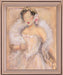 This enchanting piece captures a tender moment of grace and romance, rendered in soft pastels and delicate lines. The figure, adorned with gentle floral touches and wrapped in an airy, elegant garment, exudes timeless beauty and emotion. Set within a warm rose gold frame, this artwork adds a charming and sophisticated touch to any living room, bedroom, or office, inviting a sense of heartfelt connection and admiration.