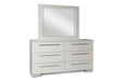 Complete your bedroom with the Sapphire Dresser Mirror in high gloss white. Expertly crafted from high-quality manufactured wood, this mirror features a flawlessly smooth, ripple-free surface and a glossy white laminate finish for a sleek, contemporary look. The wide frame, adorned with silver mylar, encases crystal-clear, low-distortion beveled glass for a perfect reflection. This mirror combines exceptional functionality with elegant design, adding sophistication to any space while seamlessly complementing modern interiors. Easy to clean and maintain, it’s an ideal choice for enhancing your bedroom's style and functionality.