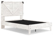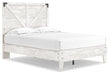 Give provincial a new meaning with the chic look of this queen crossbuck panel platform bed. The worn whitewash distressed finish keeps this piece light and fresh while the warm pewter-tone hardware adds an industrial touch. The panel headboard with crossbuck detail adds a delightfully homespun charm to your space. Best of all, our innovative bed-in-a-box shipping system delivers your new bed right to the door.