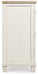 | Details | Made with hardwood solids, veneers and MDF substrates, Two-tone finish (antiqued white and light gray wood tone), Dark rustic bar pulls, 2 glass-front cabinets, each with adjustable shelf, Door includes interchangeable wood veneer panel (ships with glass panel installed), 5 drawers with fully finished interior, dovetail construction and heavy duty ball-bearing side glides (top drawer felt lined) | |