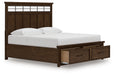 Style, simplicity and charm are hallmarks of this king panel storage bed. Created with casual spaces in mind, it has the versatility to suit styles from craftsman to modern farmhouse. The rich brown finish aligns with your refined-meets-relaxed approach to everyday style. Short on storage space? Ultra-spacious under bed drawers keep extra clothes and linens neatly tucked away. And for a timeless touch, black metal fretwork on the headboard brings an inviting mixed-material feel to the overall look.