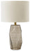 | Details | Made of glass with drum hardback fabric shade, Transparent gray finish, 3-way switch, 1 E26 socket, type A bulb recommended (not included); 100 watts max or LED equivalent; UL Listed, Assembly required | |