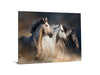 Capture the raw power and beauty of nature with “Wild Stallion Trio,” a stunning photograph printed and hand-embellished beneath tempered glass. This durable, frameless piece features three majestic horses galloping through a misty landscape, their flowing manes and dynamic motion brought to life with striking depth and shine. Perfect for living rooms or offices, it’s ready to hang with sawtooth hangers for a clean, streamlined look. Each purchase also contributes to a social cause, donating a meal to a hungry American child, making this artwork not only a visual statement but a meaningful one.
