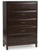 | Details | Made with select solid wood components, engineered wood veneer and MDF substrates, Rich merlot finish, Contoured drawer fronts with pressed veneer face, Metal bar pulls, 5 smooth-gliding drawers with dovetail construction and metal center mount drawer guides (top drawer felt lined) | |