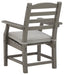 It’s the dawn of a new day for gray. Embrace the style trend with this outdoor arm chair. Crafted of HDPE material that combines the exceptional durability and weather resistance you need with the “wood look” you love, this comfortably cushioned outdoor chair takes outdoor living to a whole new level. Rest assured, the thick seat cushion is wrapped in our exclusive Nuvella® high-performance fabric that’s fade resistant, stain resistant and a breeze to clean.