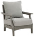 It’s the dawn of a new day for gray. Embrace the style trend with this outdoor lounge chair. Crafted of HDPE material that combines the exceptional durability and weather resistance you need with the “wood look” you love, this comfortably cushioned outdoor chair takes outdoor living to a whole new level. Rest assured, the thick seat and back cushions are wrapped in our exclusive Nuvella® high-performance fabric that’s fade resistant, stain resistant and a breeze to clean.