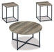 | Details | Includes round coffee table and 2 square end tables, Made of metal and engineered wood, Frame with dark metallic finish; top with decorative laminate wood grain finish, Assembly required | |