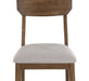 Bring mid-century charm to your dining space with this elegantly designed dining group, perfect for casual meals and stylish gatherings. The sleek, compact table features a warm woodgrain finish and softly rounded edges, creating a timeless look that blends seamlessly with any décor. Supported by tapered legs, it offers both stability and a refined aesthetic. The coordinating chairs showcase a sculpted backrest and plush upholstered seats, providing comfort while maintaining a clean, minimalist design. Ideal for small spaces or modern interiors, this set combines sophistication with everyday functionality, making it a beautiful and practical addition to any home.