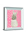 Transform your living space with the captivating charm of this White Gold Pineapple artwork. Featuring a beautifully detailed pineapple rendered in elegant white gold tones, it stands boldly against a lively coral pink background dotted with shimmering gold polka dots. Encased in a sleek mirrored frame, this piece not only adds a touch of sophistication but also reflects light to brighten any room. Crafted with premium real glass and mixed media techniques, it offers rich texture and vibrant color that enliven kitchens, dining rooms, or living areas. Ready to hang and designed with expert care, this contemporary wall art brings a playful yet luxurious accent to your home décor.