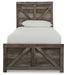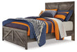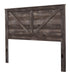 This queen crossbuck panel bed is sure to win your heart with its daring designer take on modern rustic. The bed’s crisp, clean and minimalist-chic profile is enriched with a striking replicated oak grain with thick plank styling and a weathered gray finish for that much more authentic character. Mattress and foundation/box spring available, sold separately.