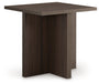 With its geometric allure, this table set serves as a striking focal point for casual or refined settings. Its clean lines and rich dark brown wood-grain finish create a warm and inviting atmosphere of natural beauty. Seamlessly blending with unpretentious lifestyle interiors, these tables offer distinctiveness and functionality.